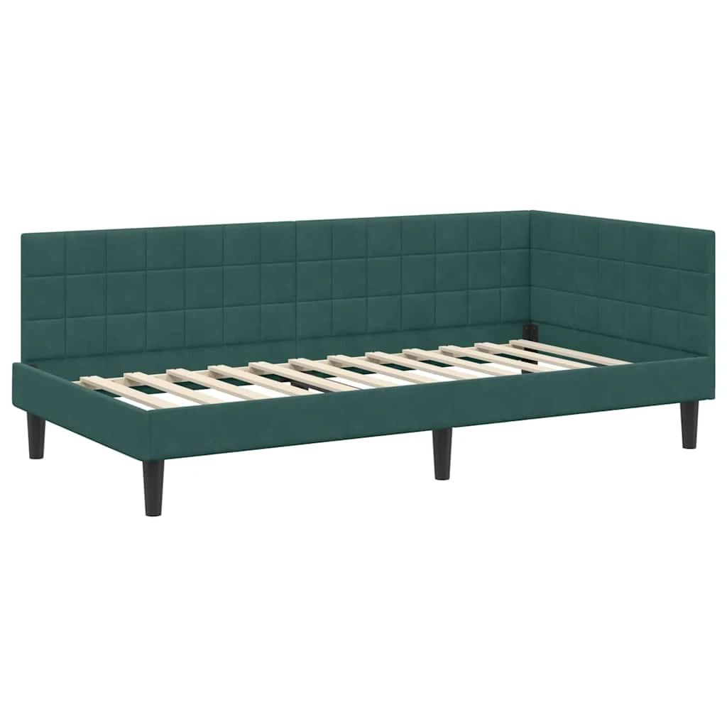 vidaXL Stūra gultas rāmis ar matrači ar galvas klāju 2 pcs Zaļa Samts
