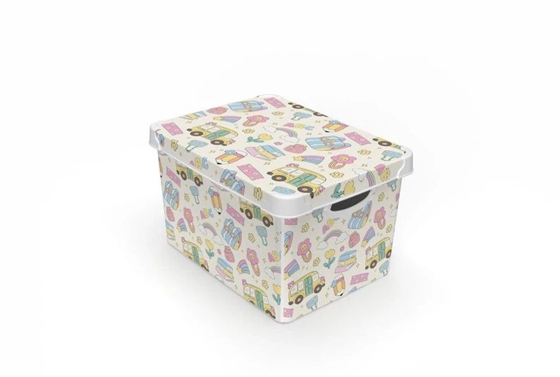 Produkta veids- Uzglabāšanas kastes ar vāku. Zīmols- Domoletti. Garums- 41 cm. Platums- 30 cm. Augstums- 24 cm. Tvertnes tilpums- 22 l. Krāsa- Iespējami vairāki krāsu un dizaina veidi, izvēlēti pēc nejaušības principa. Materiāls- Plastmasa. Obligātā garantija- 24 mēn.