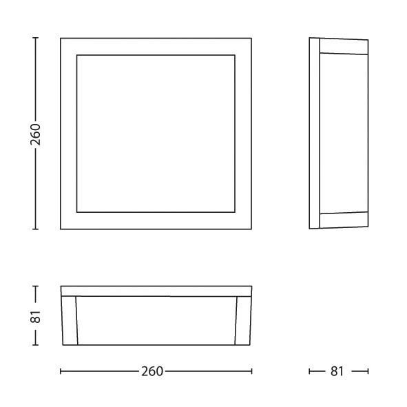 Zīmols- Philips. Spriegums- 230 - 230V. Aizsardzības līmenis (IP)- IP44. Ar kustību sensoru- Nē. Produkta veids- Āra sienas lampas. Platums- 26 - 26cm. Garums- 26 - 26cm. Augstums- 8.1 - 8.1cm. Artikuls- 915002147303. Spuldzītes ligzda- E27. Maksimālā jauda- 28 W. Spuldzīte(-s) komplektā- Nē. Spuldzīšu skaits- 2. Korpusa materiāls- Alumīnijs. Maksimālā spuldzes jauda- 14 W. Korpusa krāsa- Antracīta. Virsmas materiāls- Matēta plastmasa. Apgaismojuma krāsa- Silti balta. Virsmas krāsa- Balta. Ar gaismas sensoru- Nē. Obligātā garantija- 24 mēn.
