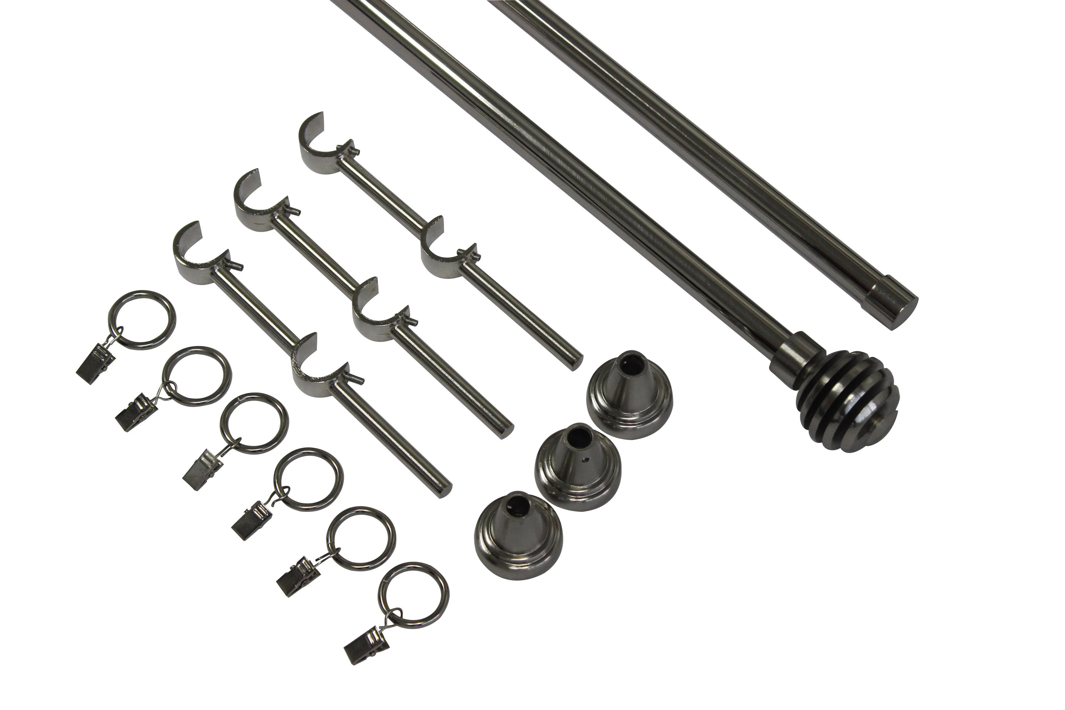 Prekės ženklas- Domoletti. Artikulas- F511252. Ilgis- 240 - 240cm. Skersmuo- 16 mm. Karnizo tipas- Strypinis. Karnizo tvirtinimas- Prie sienos. Skirta vonios kambariui- Ne. Medžiaga- Metalas. Laikikliai komplekte- Taip. Laikiklių skaičius- 3. Rekomenduojamas laikiklių skaičius- 3 - 3. Papildoma informacija- Komplektą sudaro skersiniai (2 vnt.). antgaliai (2 vnt.). laikikliai (3 vnt.). žiedai (48 vnt.)..