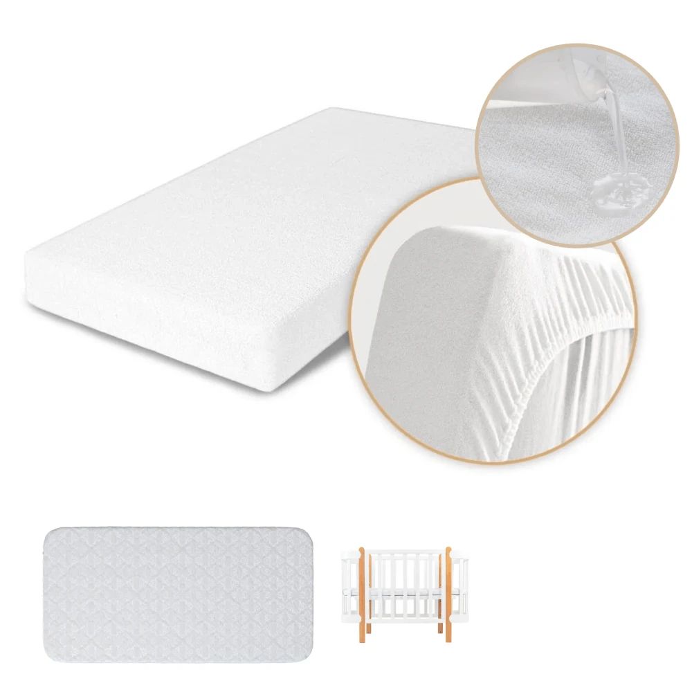 - Čiužinio užvalkalo kraštuose yra įsiūta elastinė juosta, kuri pašalina bet kokias paviršiaus raukšles, o tai labai svarbu jautriai gimusio kūdikio odai.