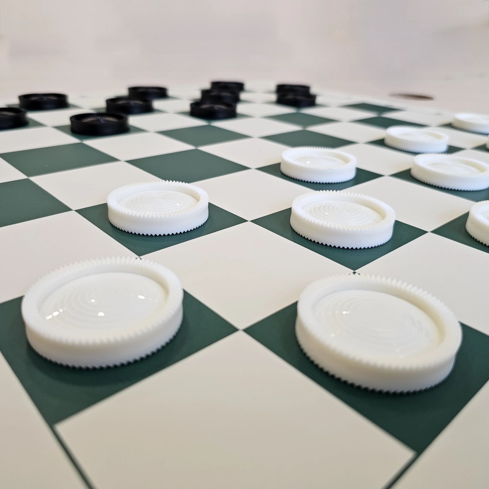 ĒRTS DIZAINS: Pateicoties gabala malu zobiem, šos dambreti ir viegli paņemt, pārvietot un sakraut. Otrai dambretes pusei ir vainaga atzīme, kas jāuzrāda kā "LADY"