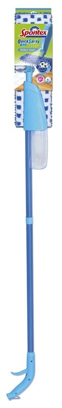 Prekės ženklas- Spontex. Ilgis- 150 - 150cm. Spalva- Mėlyna sp.. Balta sp.. Medžiaga- Plastikas. Mikropluoštas. Su purškikliu- Taip. Su nugręžimo funkcija- Ne. Privaloma garantija- 24 mėn. Teleskopinis kotas- Ne. Garantija juridiniams asmenims- 12 mėn. Papildoma informacija- Purškiantis šepetys greitam ir lengvam plovimui. Šepetys turi pritvirtintą vandens talpą. Dvipusė šluostė skirta sausam ir drėgnam valymui. Mikropluošto šluostė naikina 99% bakterijų..