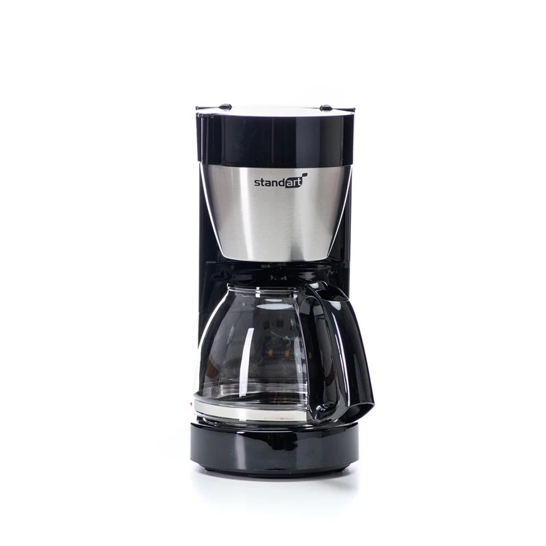 Prekės ženklas- Standart. Modelis- CM-322BE. Gylis- 28.7 cm. Plotis- 20.2 cm. Aukštis- 33.2 cm. Svoris- 1.39 kg. Spalva- Juoda. Sidabro. Korpuso medžiaga- Plastikas. Metalas. Galia- 800 W. Kavos tipas- Malta kava. Gėrimų rūšys- Kava. Vandens talpa- 1.25 l. Kavos pupelių talpa- 60 g. Talpa pienui- Ne. Kavos stiprumo reguliavimas- Taip. Vandens kietumo reguliavimas- Ne. Kelių puodelių ruošimas vienu metu- Ne. Garų antgalis- Ne. Puodelių pašildymas- Taip. Integruota kavamalė- Ne. Reguliuojamas kavos rupumas- Ne. Kavos receptų išsaugojimas- Ne. Su manometru- Ne. Automatinis plovimas- Ne. Reguliuojamas slėgis- Ne. Automatinis nukalkinimas- Ne. Apsauga nuo vandens išsiliejimo- Taip. Automatinis pieno sistemos valymas- Ne. Programuojama vandens temperatūra- Ne. Vandens filtras- Taip. Programuojamas kavos kiekis- Ne. Automatinis išsijungimas- Taip. Ekranas- Ne. Kavos aparato tipas- Filtrinis. Šaltų gėrimų ruošimas- Ne. Išmanus pakaitinimas- Ne. Kavos gėrimų kopijavimas ir personalizavimas- Ne. Programuojama pieno/pieno putos temperatūra- Ne. Kavos pupelių kiekio elektroninė kontrolė- Ne. Piltuvėlis maltai kavai- Ne. Privaloma garantija- 24 mėn. Papildoma informacija- Stiklinis kavinukas. Daugkartinio naudojimo kavos filtras. Vandens lygio matuoklė vandens bakelio vidinėje pusėje. Kavinuko palaikymo šiltai plokštė. Termostatas ir termojutiklis apsaugai nuo perkaitimo.