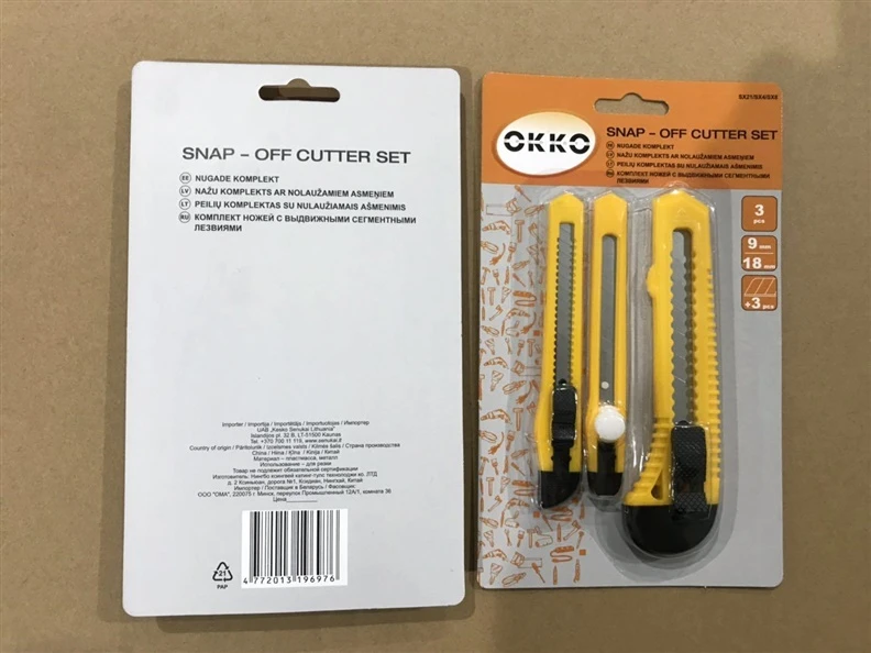 Peilių komplektas. laužomų ašmenų OKKO. 3 vnt.