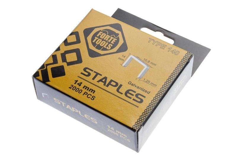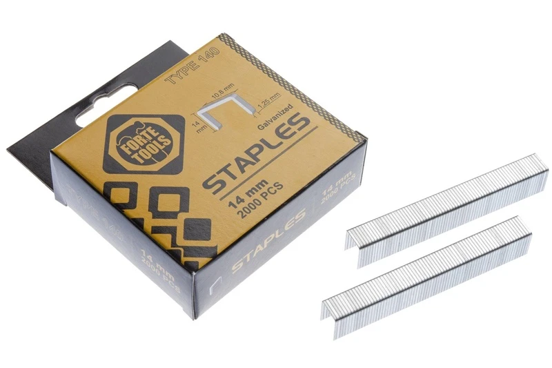 Prekės ženklas- Forte Tools. Artikulas- 1014HD. Ilgis- 10.8 mm. Plotis- 1.25 mm. Spalva- Sidabro. Medžiaga- Metalas. Vienetai pakuotėje- 2000. Kabės / Vinutės tipas- 140. Papildoma informacija- Medžiaga: nerūdijantis plienas.
