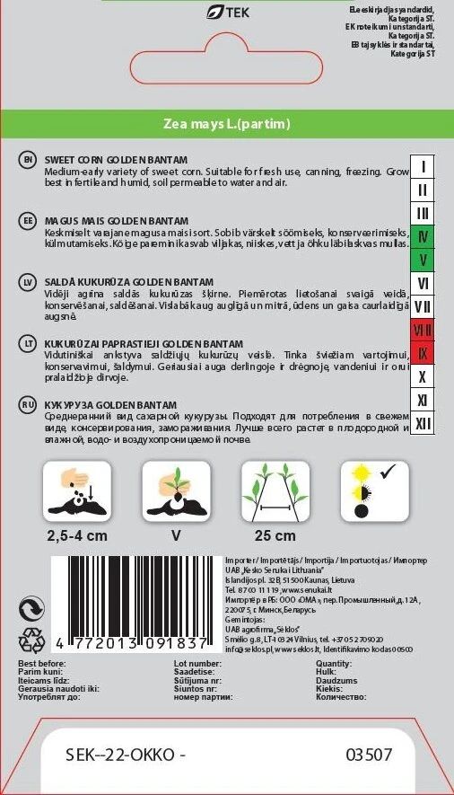 Sēklas kukurūza golden bantam