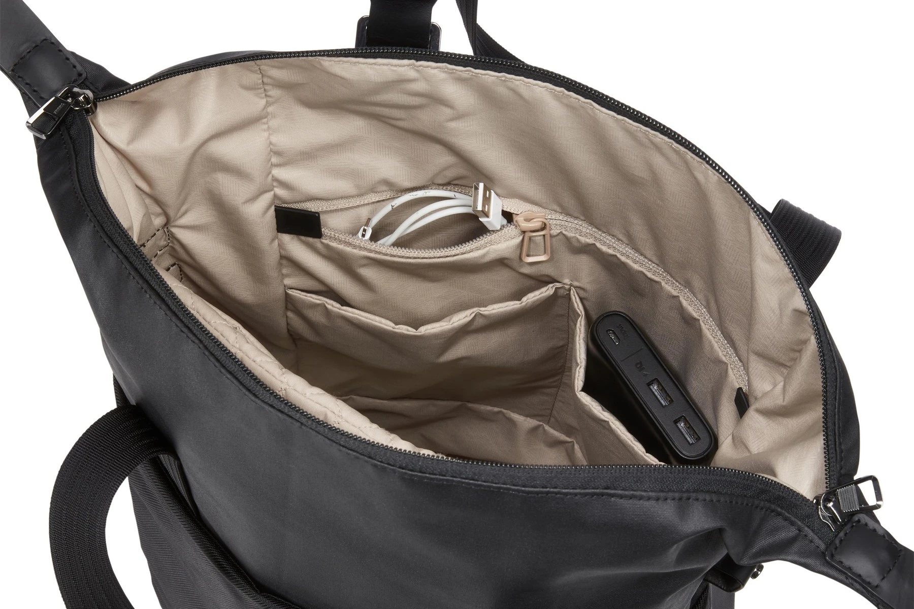 Tvarkykite įvairius priedus su vidinėmis kišenėmis, užtrauktuku užsegamu skyriumi ir struktūrine kišene.
