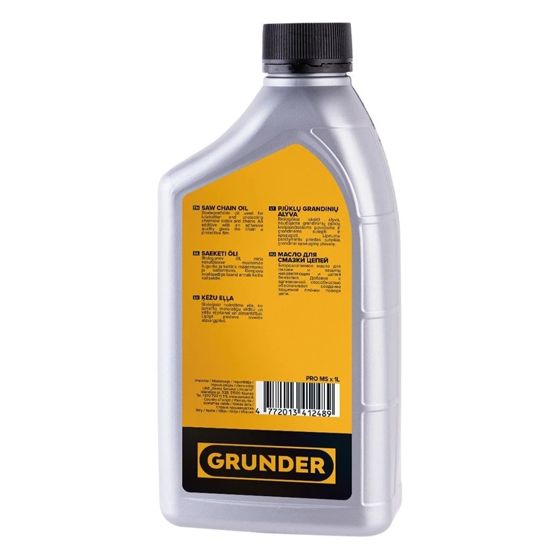 Prekės ženklas- Grunder. Variklio tipas- Benzininis. Tepalo paskirtis- Grandininiams pjūklams. Tūris- 1 l.
