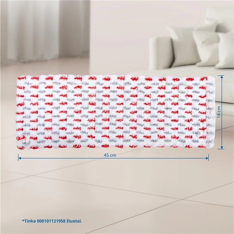 Prekės ženklas- Thema Lux. Artikulas- R-A101. Ilgis- 400 - 400mm. Plotis- 150 mm. Spalva- Balta. Raudona. Medžiaga- Mikropluoštas. Šluostė skalbiama- Taip. Priedas tinkamas- Tinka grindų valymo šluotai 000101121958 ( A130101). Privaloma garantija- 24 mėn.