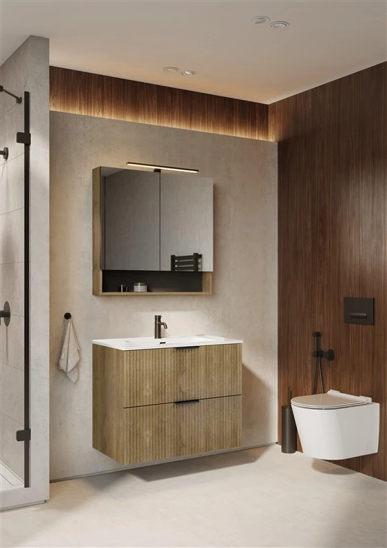 Pakab vonios spint su veidrod Lamello. ruda. 18.8x80x79.7 cm