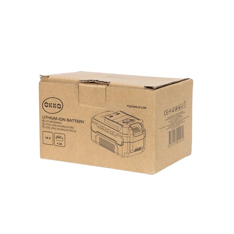 Pakrovimo lygio indikatorius- Taip. Akumuliatoriaus/baterijos tipas- Li-ion. Garantija- 12 mėn. Skirta įrankiui- Universalus. Akumuliatoriaus/baterijos talpa- 4000 mAh. Prekės ženklas- Okko. Artikulas- TCB1807JX-LI40. Akumuliatoriaus įtampa- 18 - 18V.