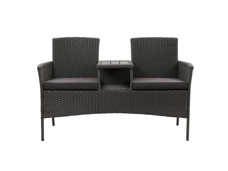 Prekės ženklas- Domoletti. Modelis- Hugo. Artikulas- 53000010189. Ilgis- 138 cm. Plotis- 61 cm. Aukštis- 86 - 86cm. Spalva- Juoda. Apdailos medžiaga- Ratanas. Baldų rėmo medžiaga- Plienas. Maksimalus sėdimų vietų skaičius- 2. Su porankiais- Taip. Didžiausias naudotojo/-ų kūno svoris- 120 kg. Garantija- 24 mėn.