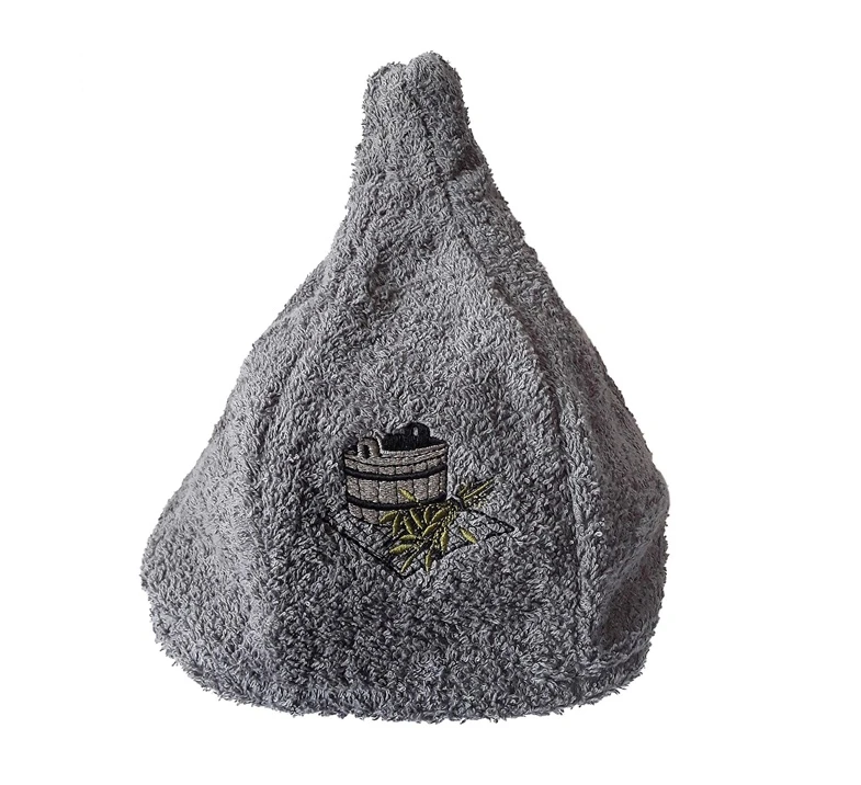 Medvilninė pirties kepurė su kubilo paveikslėliu. pilka