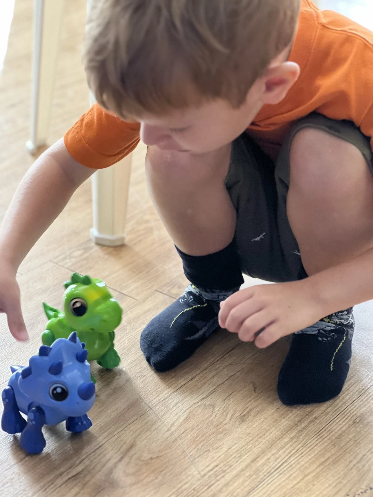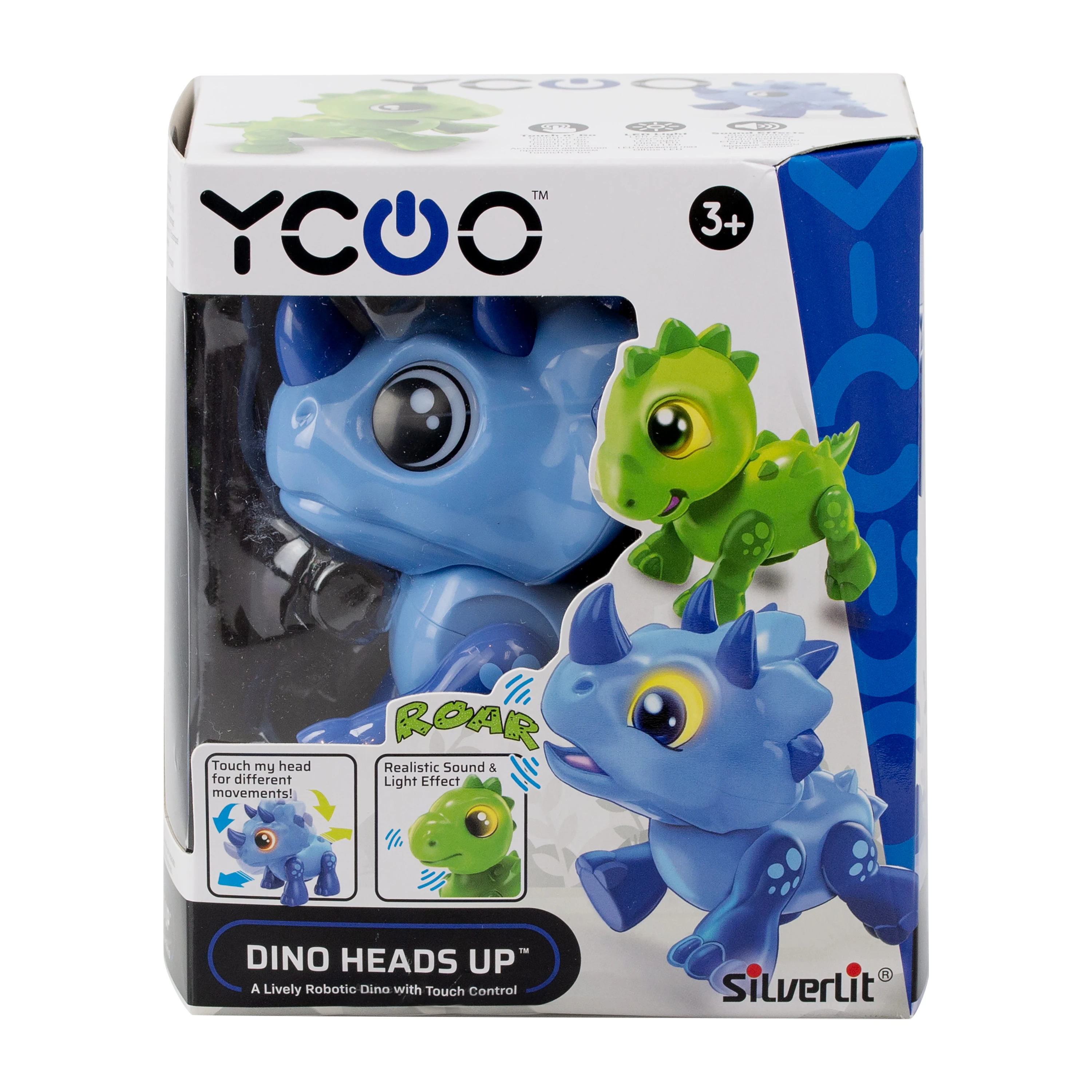 Šis mielas dinozauras – tai robotas su garsais ir šviesomis, kurį gali valdyti paliesdamas. Paspausk žemyn dinozauro galvą ir jis pradės riaumoti bei eiti pirmyn! Pakelk dinozauro galvą į viršų ir jis pradės riaumoti bei eiti atgal! Asortimente – 2 skirtingos spalvos.
