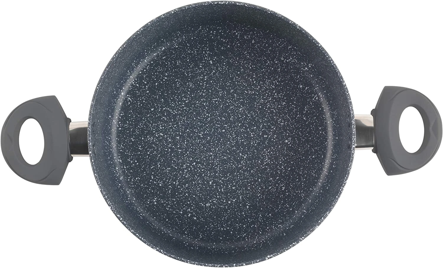Pagaminta iš patvaraus presuoto aliuminio, aukštos kokybės mėlyno marmuro dviejų sluoksnių nepridegantis vidus leidžia gaminti su mažiau aliejaus.