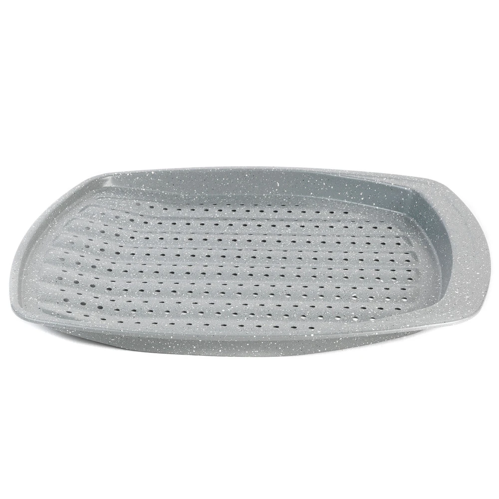 Universalus gaminimas: sukurta su pakeltais kraštais, kad maistas gerai laikytųsi, perforuotas pagrindas užtikrina papildomą traškumą ir gali būti naudojama įvairiems patiekalams gaminti, įskaitant bulvytes, bulvių skilteles, sausainius, keptas daržoves ir kt.!