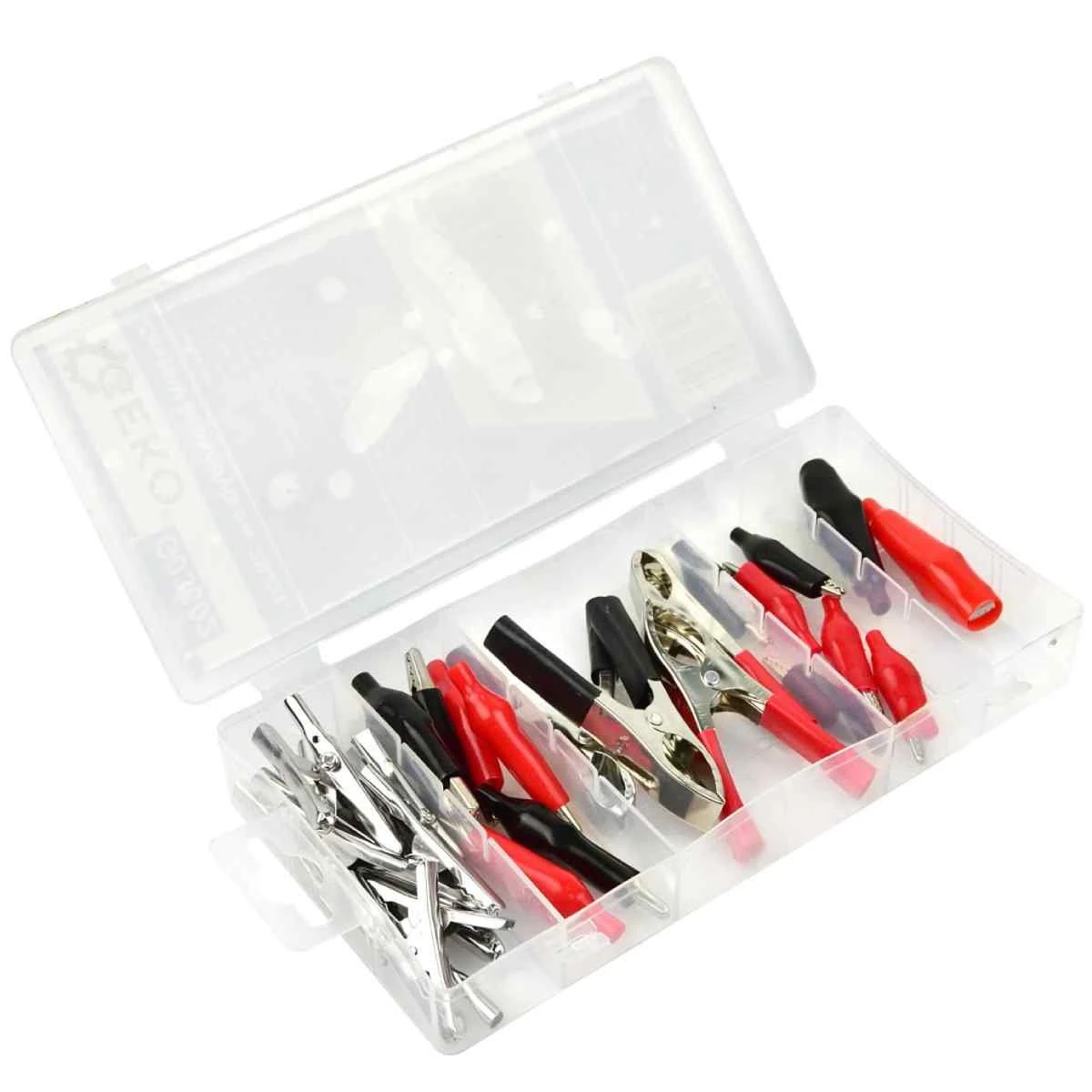 Komplektā ietilpst 28 krokodila tipa vadu spailes dažādos izmēros, gan izolētas, gan neizolētas. Izgatavotas no tērauda.