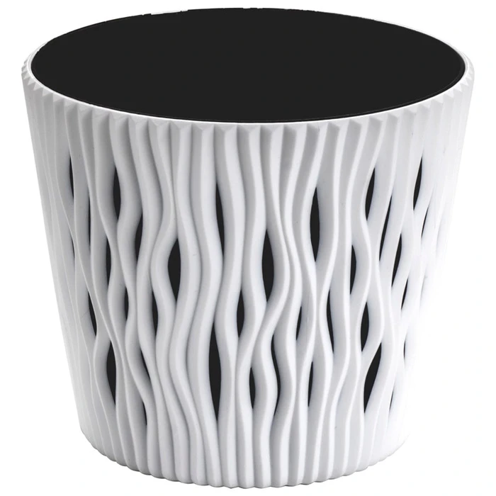 Puķu pods izgatavots no kvalitatīvas plastmasas, tas ir viegls un vienlaikus izturīgs. Puķu poda unikālo dizainu veido ar izgriezumiem dekorēts matēts ārējais puķu pods un melnais ieliktnis. Puķu pods ir UV un sala izturīgs.