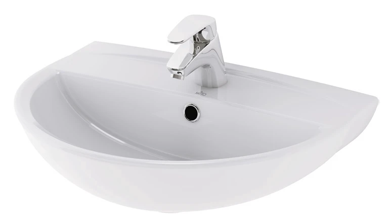 Pie sienas stiprināma izlietne Mito Red 55 ar atveri maisītājam un pārplūdi. Jaucējkrāns un sifons nav iekļauti komplektā.