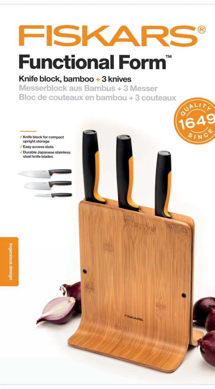 Fiskars Functional Form bambuko peilių blokas su 3 peiliais ,1057553,