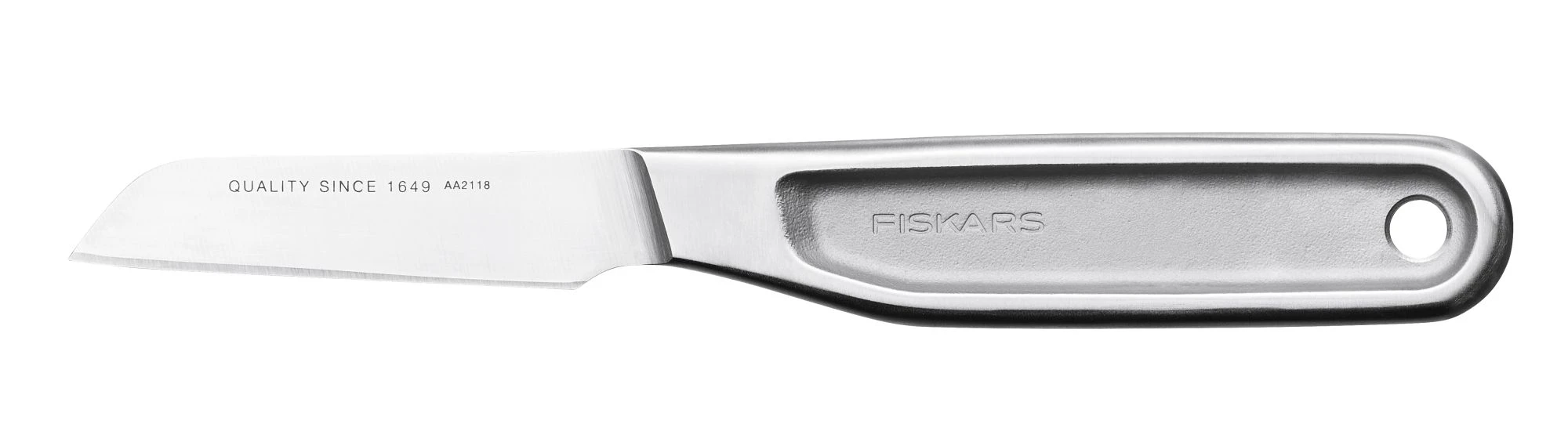 Fiskars All Steel mizošanas naziukas yra idealiai tinkamas mažų vaisių ir daržovių lupimui bei pjaustymui <br /> All Steel peiliai derina aukštos kokybės medžiagas ir nepriekaištingą funkcionalumą <br /> Pagaminti iš japoniško aukšto anglies kiekio plieno, užtikrinančio puikų našumą ir ilgaamžiškumą <br /> Optimalus balansas geriausiam pjaustymui <br /> Liejimo peilis turi be siūlių nerūdijančio plieno konstrukciją <br /> Rekomenduojama galąsti naudojant Fiskars Roll-Sharp(tm) arba Whetstone <br /> Rekomenduojama plauti rankomis ir saugoti atsargiai <br /> Ašmens ilgis 70 mm <br /> HRC 58 <br /> Efektyvus pjaustymas (CATRA testavimas) <br /> Sukurtas ilgalaikiam naudojimui su 25 metų garantija <br /> Perdirbama pakuotė <br /> Sukurtas Suomijoje