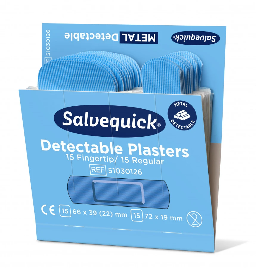 Mėlyna spalva taip pat leidžia lengvai pamatyti pleistrus.