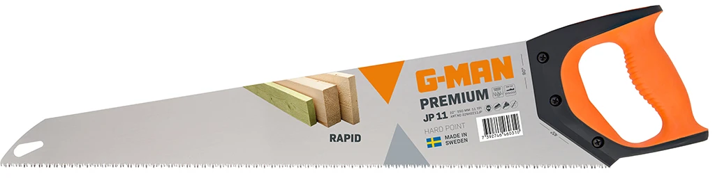 Tradicionāls rokas zāģis. Zobi ar 3 griešanas malām un īpašu izvietojumu. 11 zobi collā, garums 400 mm.