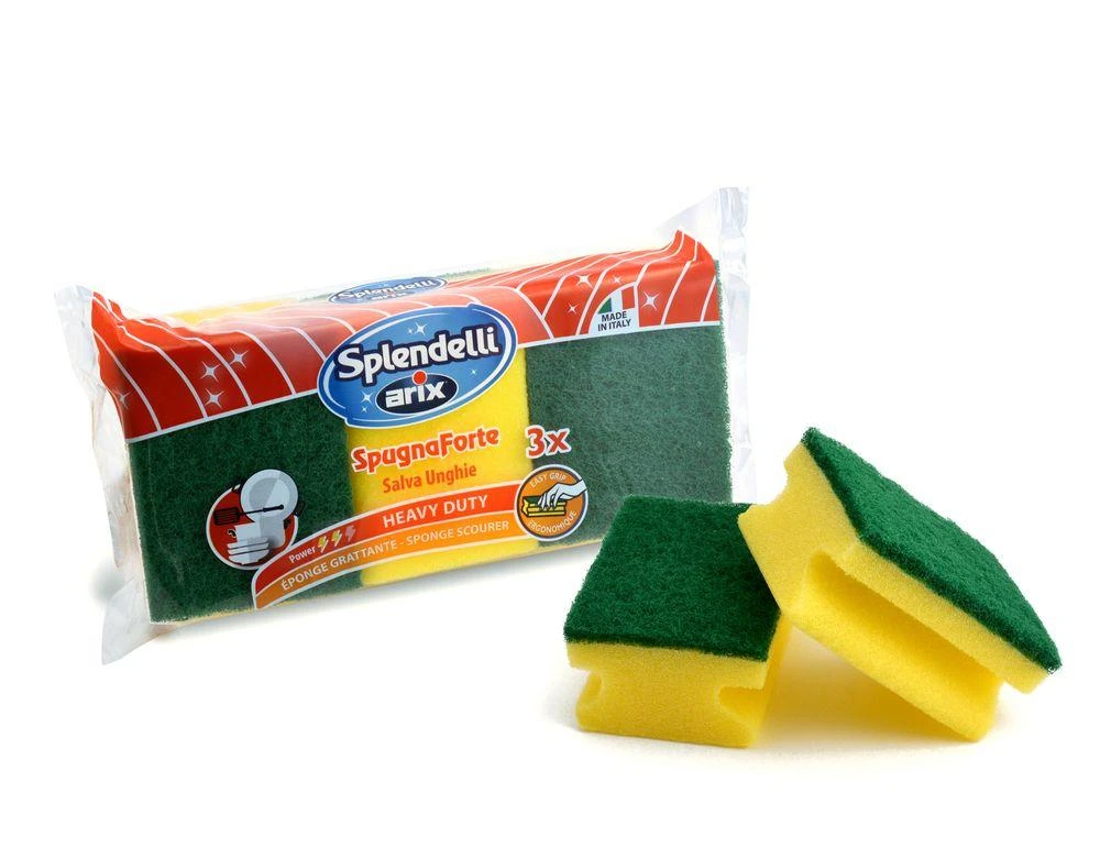 Minkšta poliuretano kempinė su abrazyvine šerdimi. Giliai pašalina nešvarumus ir riebalus nuo puodų, lėkščių, stalo įrankių ir visų nedelių paviršių. Kempinės mikroporėtumas leidžia sumažinti reikalingų valymo priemonių kiekį. Prieš pirmąjį naudojimą ir po kiekvieno naudojimo gerai išskalaukite dideliu karšto vandens kiekiu. Prieš naudojimą visų pirma patikrinkite jos abrazyvumą mažoje paslėptoje valomosios paviršiaus dalyje. Komplekte 3 vnt.