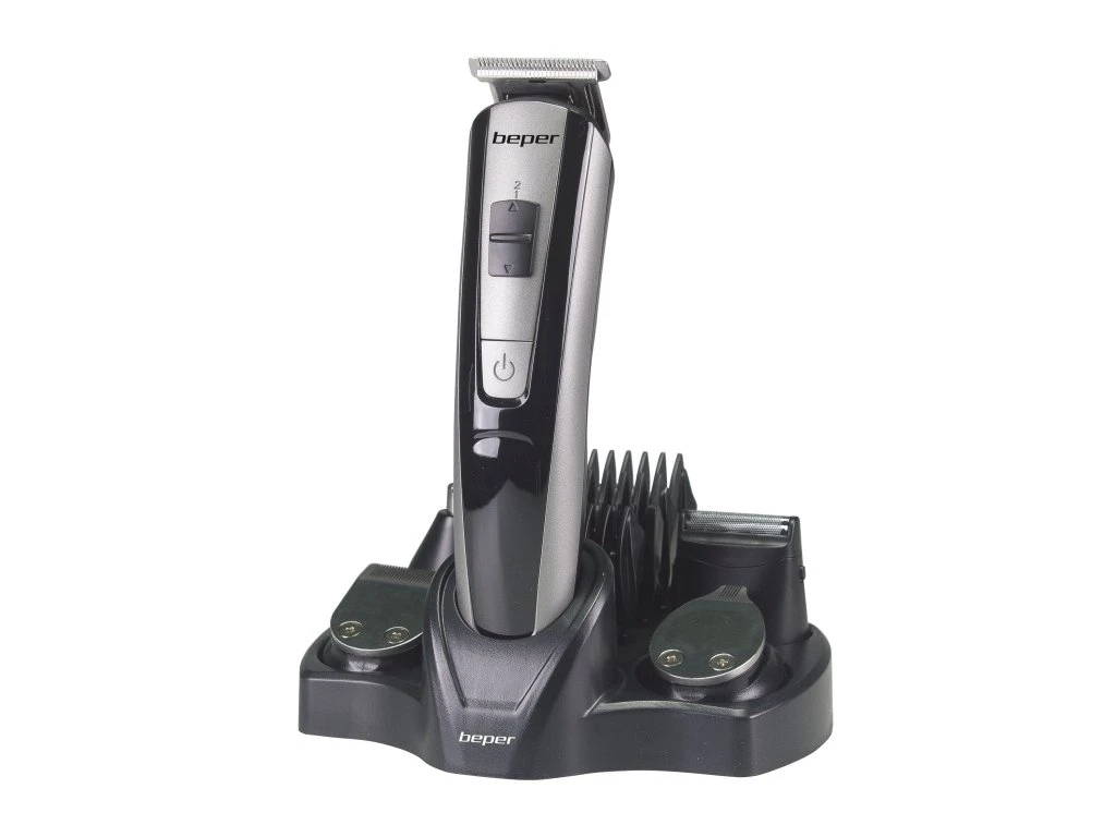 Unikalus prietaisas su 10 funkcijų: plaukų kirpimo mašinėlė, barzdos kirpimo mašinėlė, nosies ir ausų kirpimo mašinėlė, skustuvas, tiksli galvutė ir 5 kirpimo galvutės. Su plieniniais peiliukais, 4 plaukų kirpimo mašinėlėmis su 4 kirpimo ilgiais nuo 3 iki 12 mm ir 1 šukomis barzdai reguliuoti nuo 4 iki 7 mm. Įkraunamas ir laidinis veikimas iki 60 minučių autonomijos ir 90 minučių įkrovimas. Su atraminiu pagrindu, šukomis, tepimo alyva ir valymo šepetėliu.