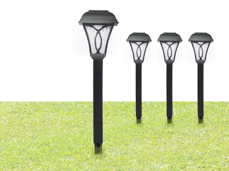4 saulės šviestuvų rinkinys sodui ir balkonui, įskaitant piketą.