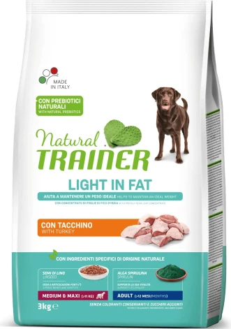 NATURAL TRAINER DOG WEIGHT CARE ADULT MEDIUM-MAXI TURKEY 3KG - Pilnvērtīga un sabalansēta barība svara kontrolei lielo-vidējo