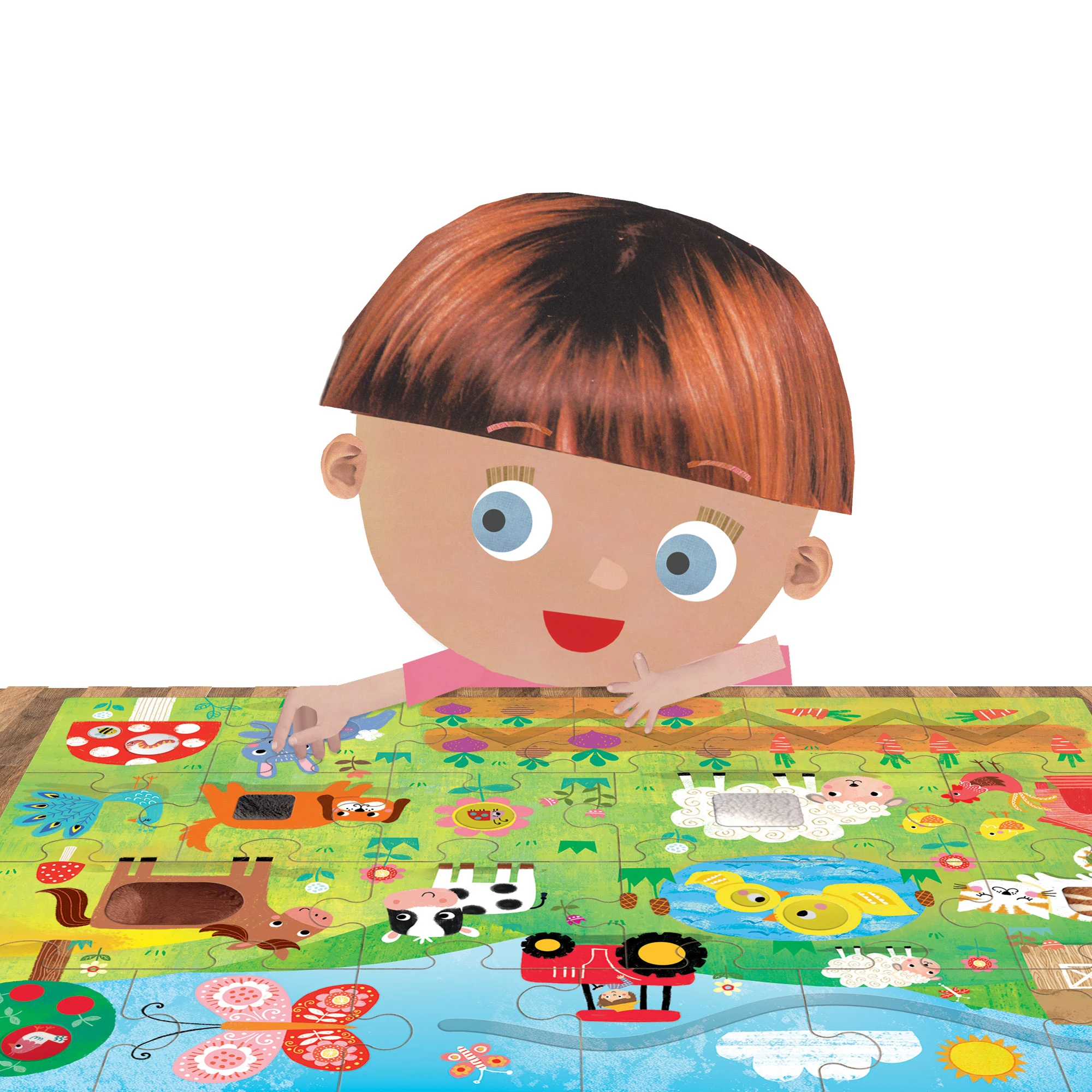 „Headu“ – tai smagūs ir kokybiški žaidimai, žaislai, knygelės ir mobiliosios programėlės, naujoviškais mokymo metodais padedančios vaikams ugdyti esminius įgūdžius. Visas dėlionės detales išdėliokite ant stalo ir liepkite vaikui įsidėmėti ant jų pavaizduotus objektus, visus juos tardami garsiai: „Arklys! Traktorius! Katė!...” Tada leiskite vaikui savarankiškai surinkti dėlionę. Vaikui susidūrus su sunkumais, duokite jam keletą užuominų, kaip būtų galima rasti teisingą detalės vietą, tačiau nedėliokite dėlionės už jį. Dėlionė turi dideles detales ir kai kurios iš jų – tekstūrinės, tad baigęs dėlionę, vaikas gali ją liesti ir susipažinti su įvairiomis tekstūromis.
