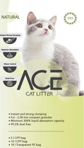 ACE Natural CAT LITTER 5 LT - cementējošās smiltis kaķu tualetei 5 L
