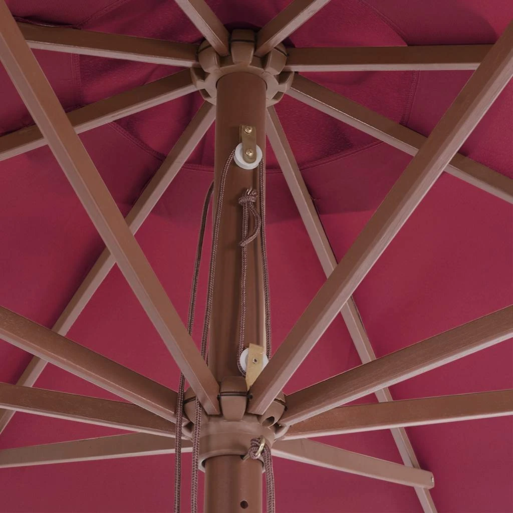 vidaXL Lauko skėtis su mediniu stulpu, tamsiai raudonas, 350cm