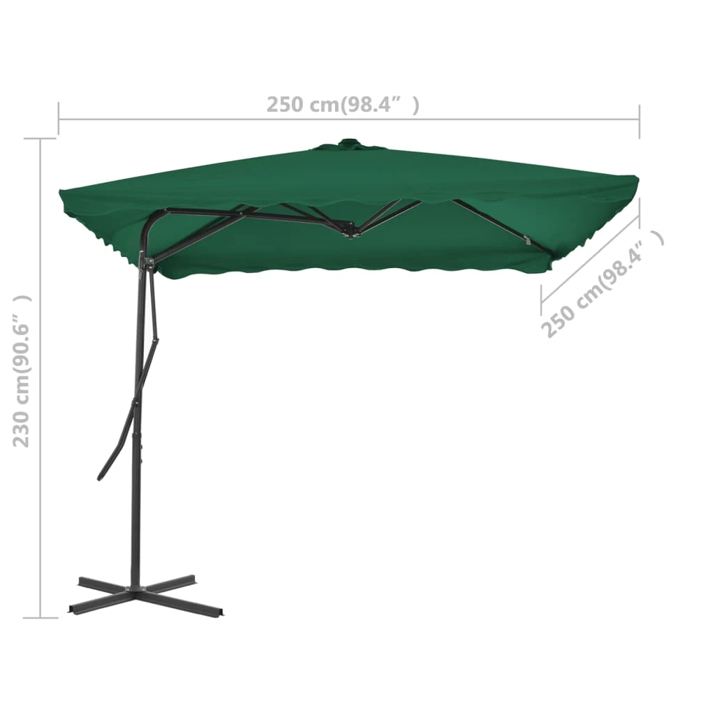 vidaXL Lauko skėtis nuo saulės su plieniniu stulpu, žalias, 250x250cm