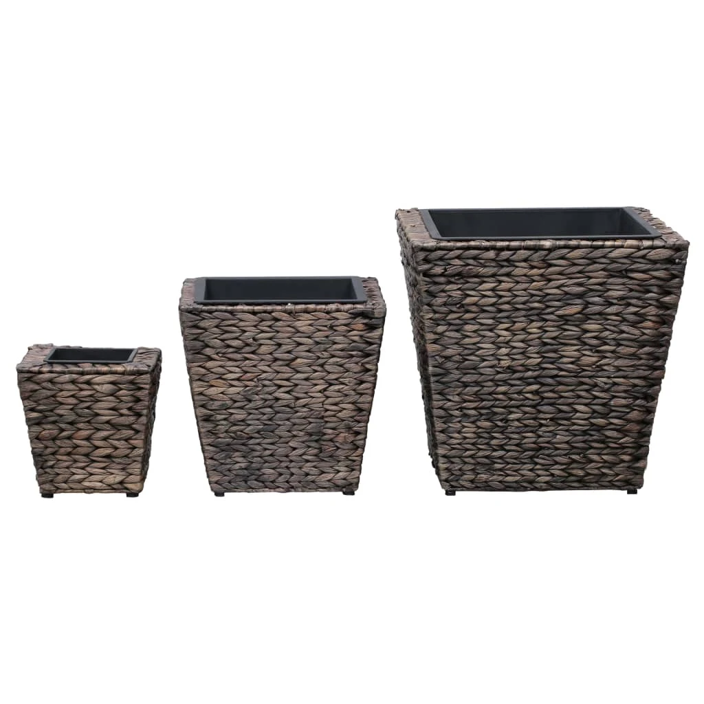 vidaXL Aukšti loveliai, 3vnt., rudos spalvos, vandens hiacintas
