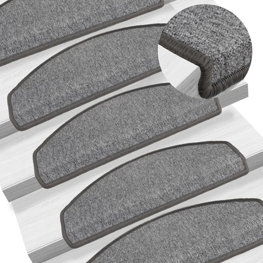 vidaXL Laiptų kilimėliai, 15 vnt., 65x24x4 cm, tamsiai pilki, pusapvaliai, dideli