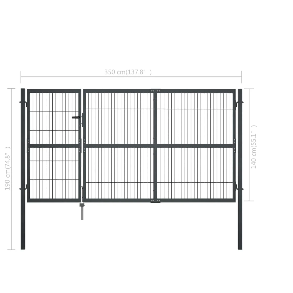 vidaXL Sodo vartai su stulpais, antracito sp., 350x140 cm, plienas