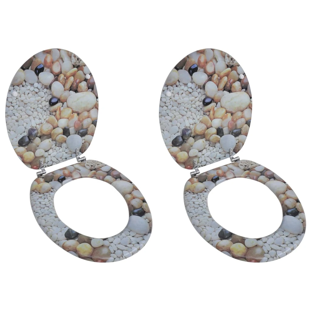 vidaXL Klozeto sėdynės su dangčiu, 2vnt., MDF, akmenukų dizainas