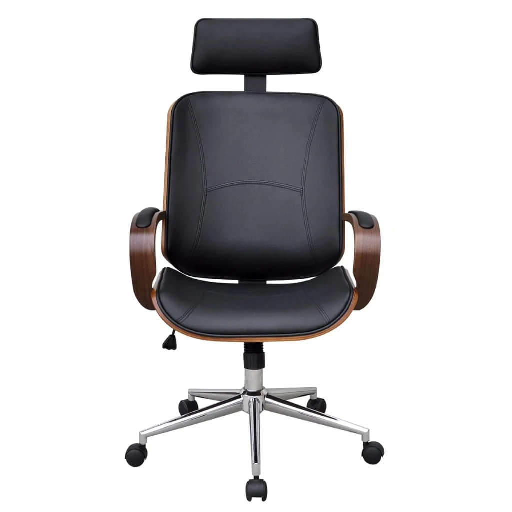 Pasukama biuro kėdė su atlošu galvai, bukmedis, dirbtinė oda