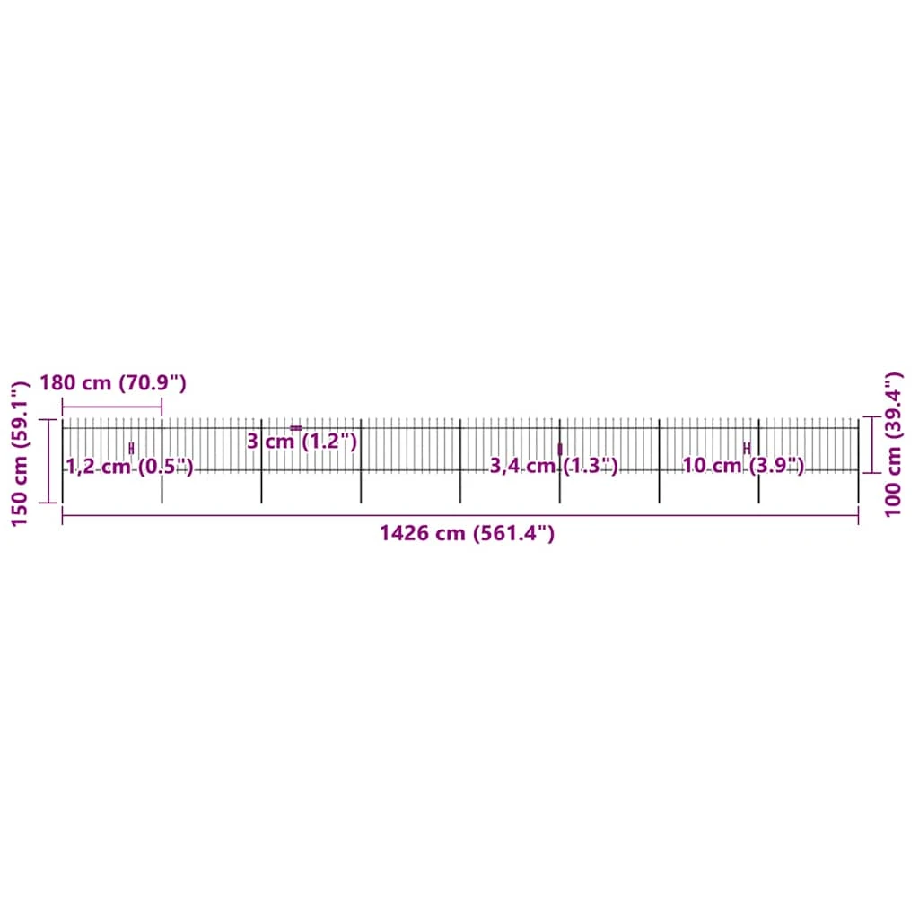 vidaXL Sodo tvora su iešmeliais, plienas, 1426x100cm, juoda