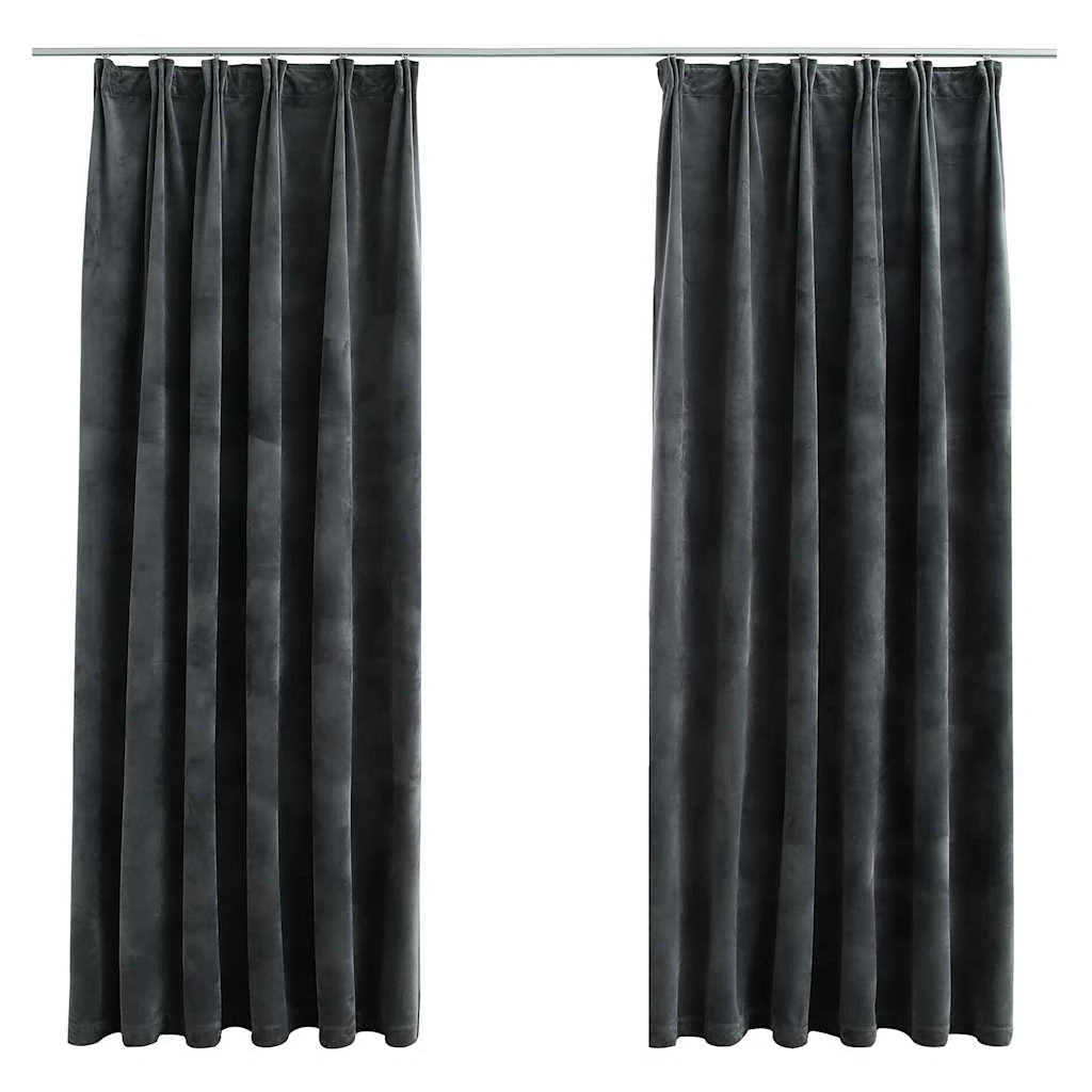 vidaXL Naktinės užuolaidos su kabliukais, 2vnt., antracito, 140x175cm