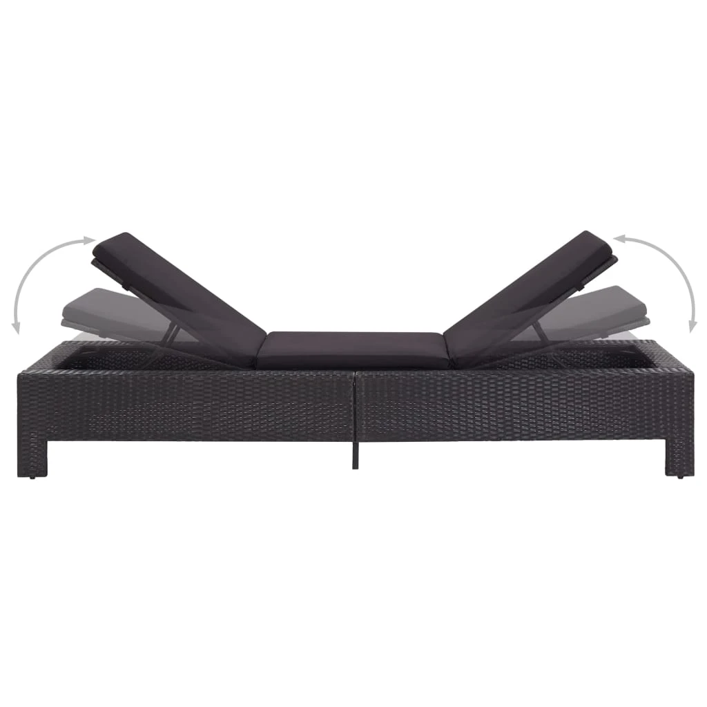 vidaXL Dvivietis saulės gultas su čiužinukais, juodas, poliratanas
