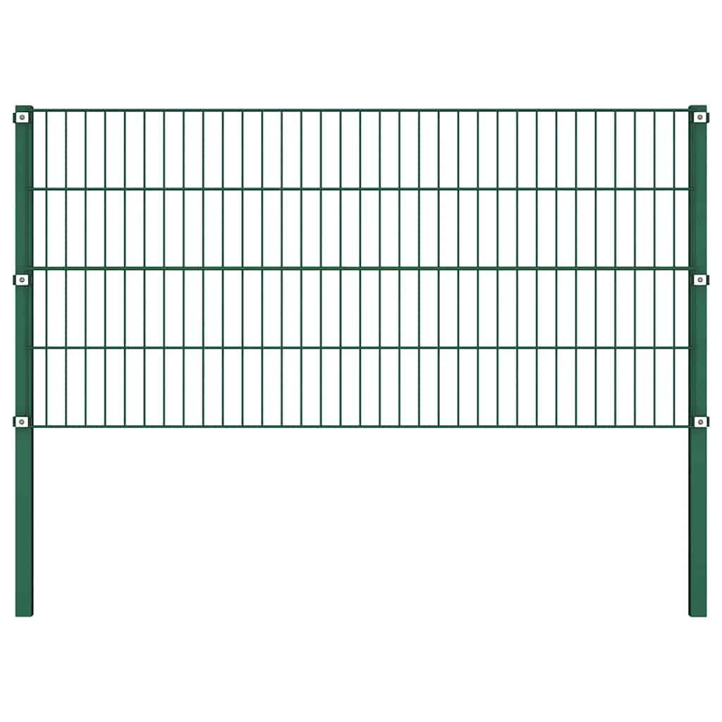 vidaXL Tvoros plokštė su stulpais, geležinė, 349x80cm, žalia