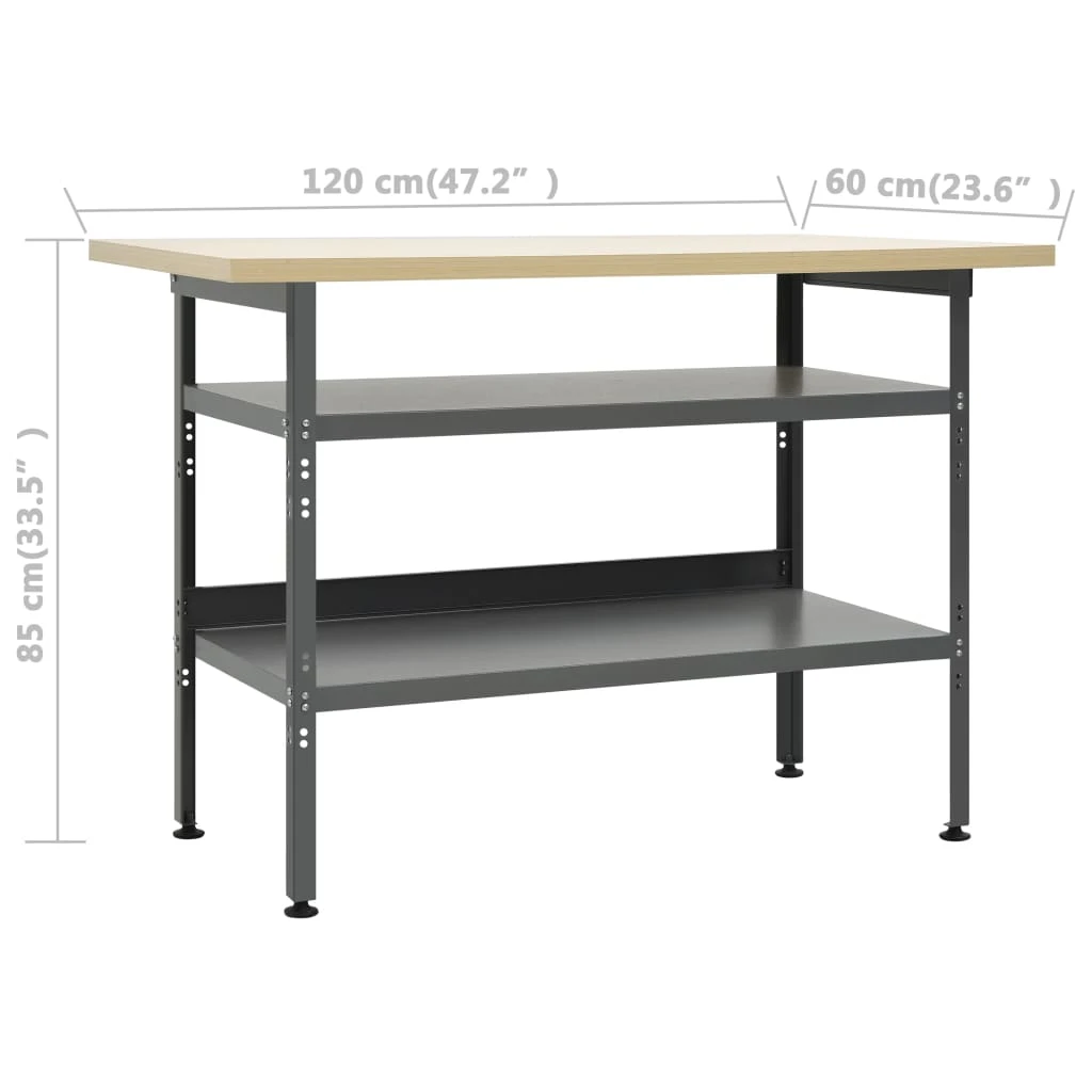 vidaXL Darbastalis, pilkos spalvos, 120x60x85cm, plienas