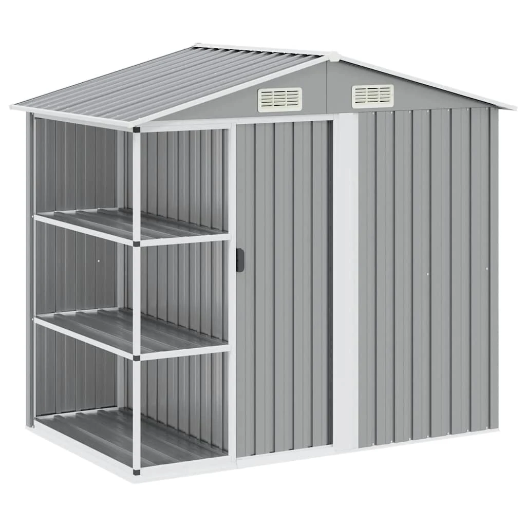vidaXL Sodo pašiūrė su lentyna, pilkos spalvos, 205x130x183cm, geležis