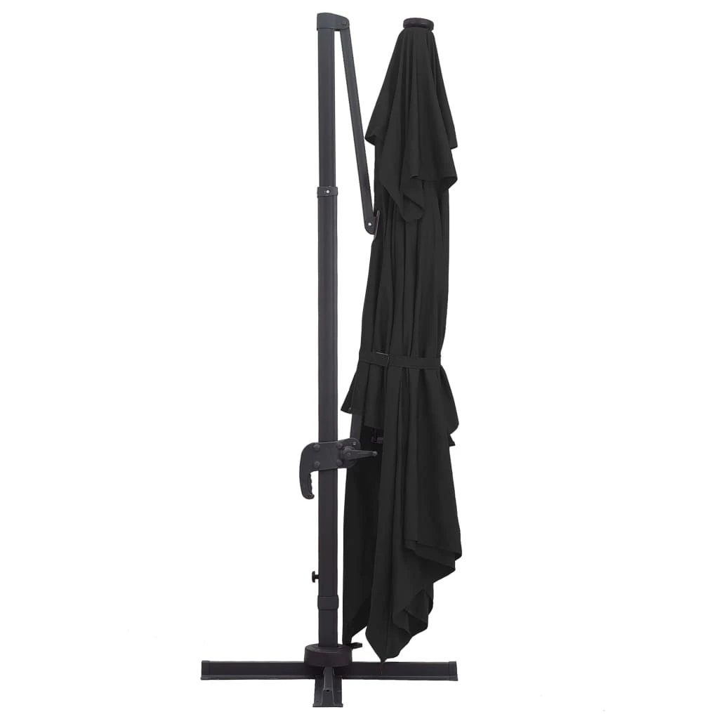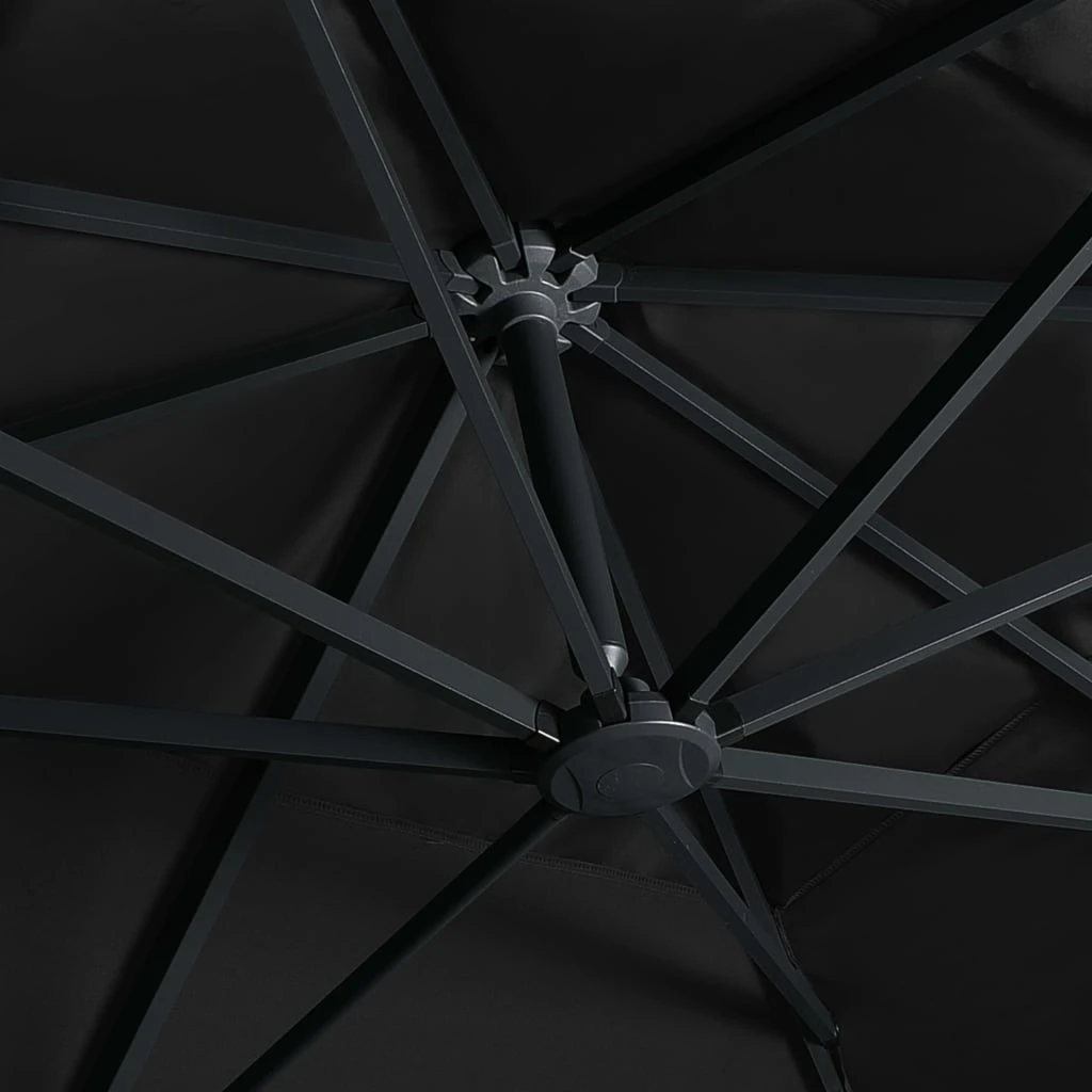 vidaXL Gembinis skėtis su LED-aliuminio stulpu, juodas, 400x300cm