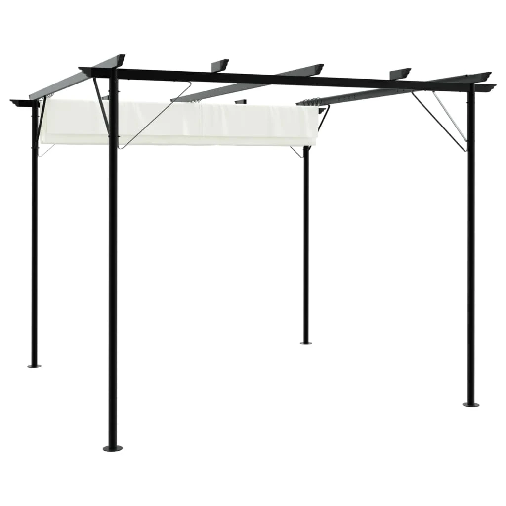 vidaXL Pergolė su ištraukiamu stogu, kreminė balta, 3x3m, plienas