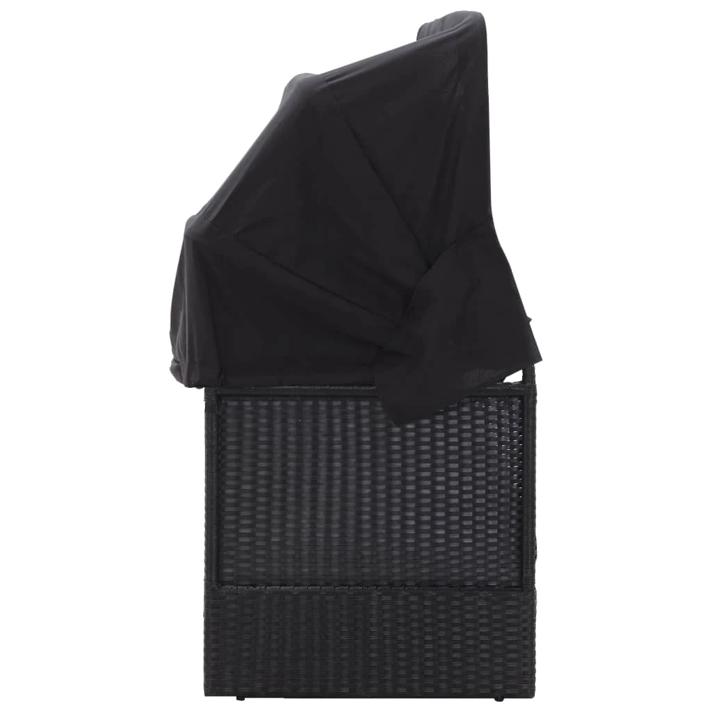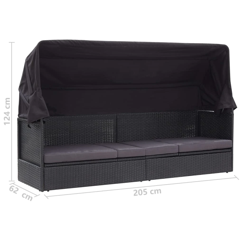 vidaXL Lauko sofa-lova su stogeliu, juodos spalvos, poliratanas